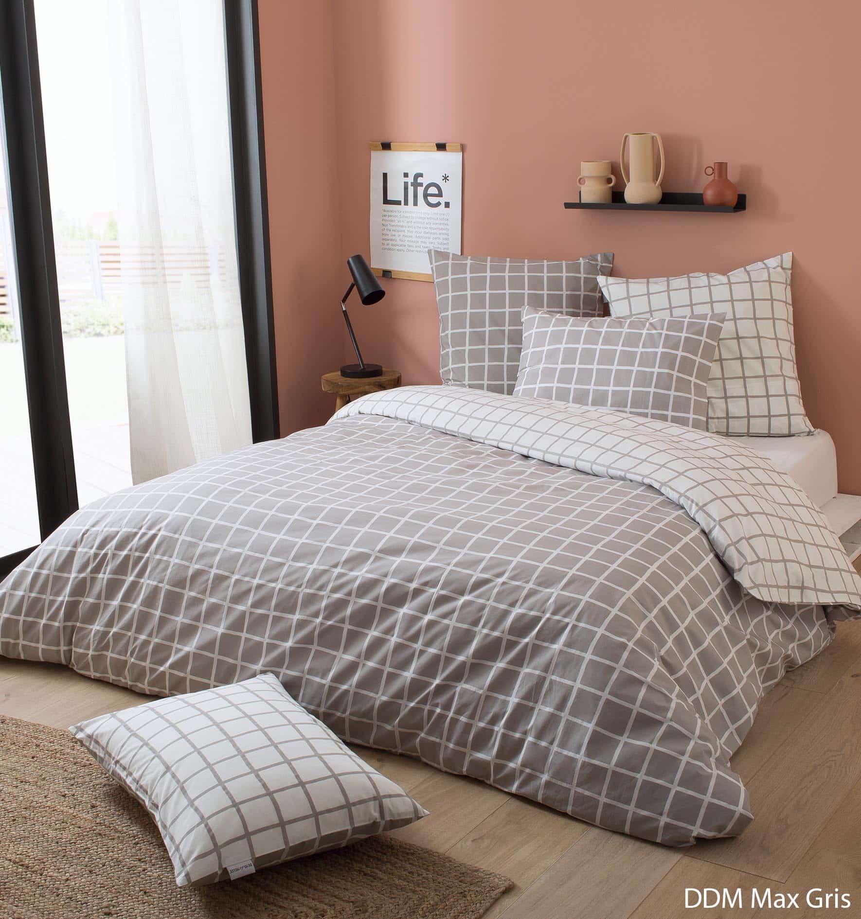 votre Parure 2 Taies + 1 Housse de couette percale de coton 80 fils DDM Beige/Gris