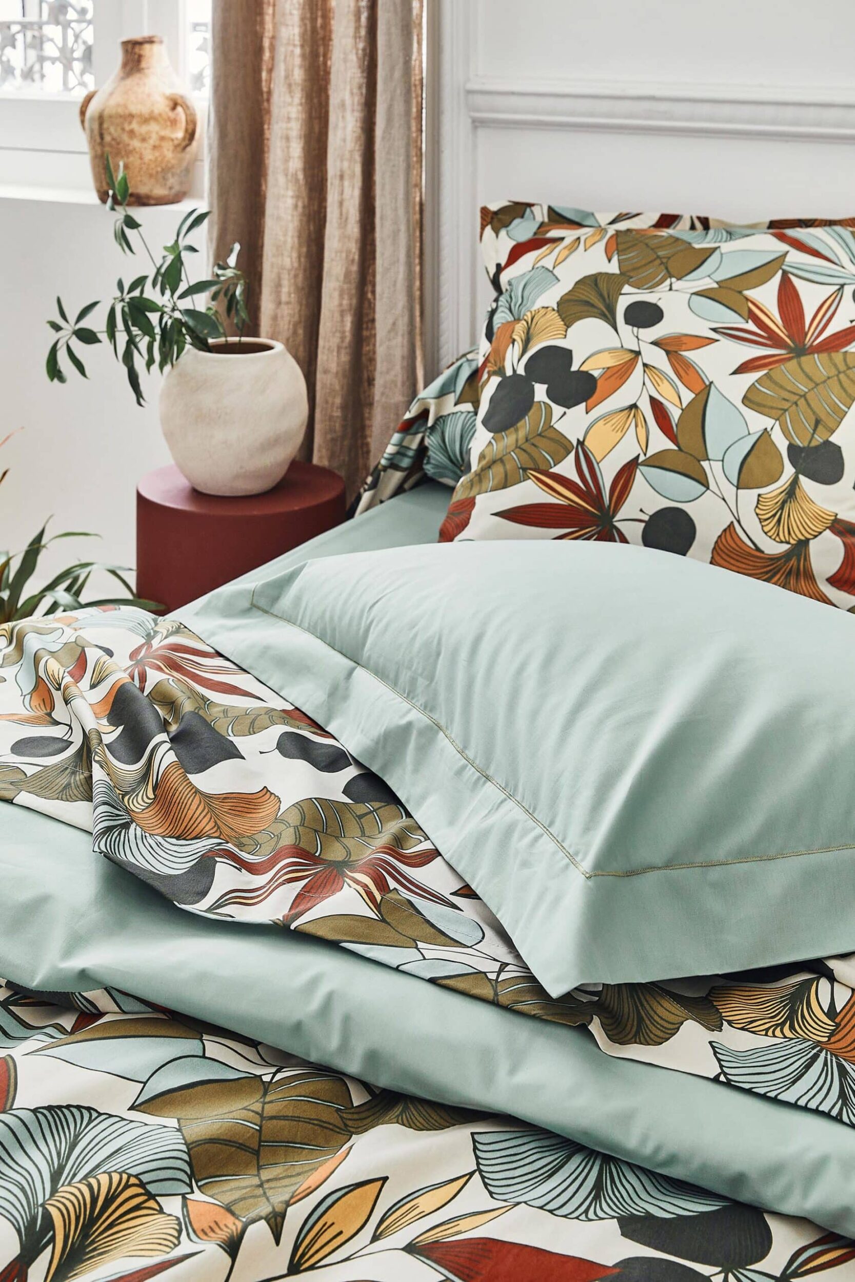 votre Taie d’oreiller percale de coton 80 fils Cascade Sauge
